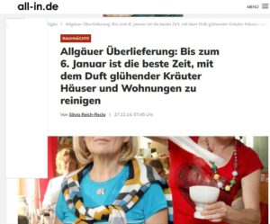 Allgäuer Überlieferung: Bis zum 6. Januar ist die beste Zeit, mit dem Duft glühender Kräuter Häuser und Wohnungen zu reinigen |